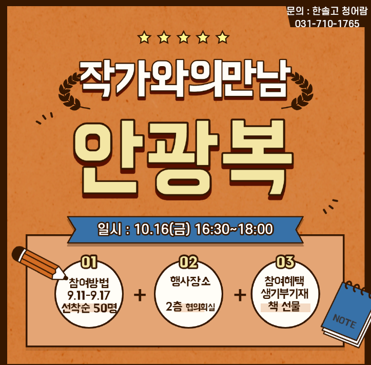 ÇÑ¼Ö°í µµ¼°ü¿¡¼´Â 2020³âµµ 9¿ù µ¶¼ÀÇ ´ÞÀ» ¸ÂÀÌÇÏ¿© ÀÛ°¡¿ÍÀÇ ¸¸³²À» ¿î¿µÇÕ´Ï´Ù. ÇлýµéÀÇ ¸¹Àº ½Åû ¹Ù¶ø´Ï´Ù.