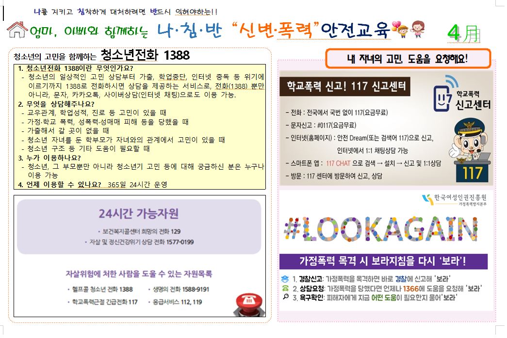 ÀÌ¿Í °ü·ÃÇÏ¿© °¡Á¤¿¬°è±³À°ÀڷḦ ¾È³»ÇÏ¿À´Ï, ¾Æ·¡ ³»¿ëÀ» Âü°íÇϽþî ÀÚÀ²¾ÈÀüÁ¡°Ë ½Çõ ¿îµ¿, Çлý ¾ÈÀü±³À° µî¿¡ ÇùÁ¶ÇÏ¿© Áֽñ⠹ٶø´Ï´Ù.