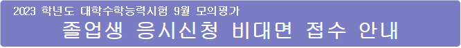 º»±³ Á¹¾÷»ýÀ» ´ë»óÀ¸·Î ÇÑ 2023Çг⵵ ´ëÇмöÇдɷ½ÃÇè 9¿ù ¸ðÀÇÆò°¡ ½ÃÇà°èȹ ¹× ºñ´ë¸é ¿ø¼ Á¢¼ö¿¡ ´ëÇØ ¾È³»µå¸³´Ï´Ù.