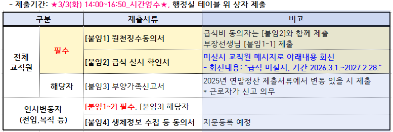 °øÁö»çÇ× Home > ¾Ë¸²¸¶´ç > °øÁö»çÇ× ÀÌ ÆäÀÌÁö´Â ÀÚ¹Ù½ºÅ©¸³Æ®°¡ Áö¿øµÇÁö ¾Ê´Â ºê¶ó¿ìÀú¿¡¼ ÀϺΠ±â´ÉÀÌ Á¦´ë·Î ÀÛµ¿ÇÏÁö ¾Ê½À´Ï´Ù. Á¦¸ñ 2026Çг⵵ ±³Á÷¿ø ±Þ¿© °ü·Ã Á¦Ãâ¼·ù ¾È³» À̸§ ±è*¹Ì µî·ÏÀÏ 2026-02-25 2026Çг⵵ ±³Á÷¿ø ±Þ¿© Á¦Ãâ¼·ù ¾È³»µå¸®¿À´Ï, ±âÇÑ ³» Á¦ÃâÇÏ¿© Áֽñ⠹ٶø´Ï´Ù. ÷ºÎÆÄÀÏ [ºÙÀÓ1] 2026Çг⵵ ¿øÃµÂ¡¼öµ¿ÀǼ(»óÁ¶È¸ºñ,±Þ½Äºñ).hwp   ´Ù¿î·Îµå ¼ö : [ 8 ] [ºÙÀÓ1-1] 2026Çг⵵ ¿øÃµÂ¡¼öµ¿ÀǼ(ºÎÀåȸºñ_ÇØ´çÀÚ).hwp   ´Ù¿î·Îµå ¼ö : [ 5 ] [ºÙÀÓ2] 2026Çг⵵ ±³Á÷¿ø ±Þ½Ä ½Ç½Ã È®Àμ_¹Ì½Ç½ÃÀÚ´Â ¸Þ½ÃÁö ȸ½Å.hwp   ´Ù¿î·Îµå ¼ö : [ 9 ] [ºÙÀÓ3] 2026Çг⵵ ºÎ¾ç°¡Á·½Å°í¼.hwp   ´Ù¿î·Îµå ¼ö : [ 10 ] [ºÙÀÓ4] »ýüÁ¤º¸ ¼öÁý ¹× °Å·¡Ã³ °³ÀÎÁ¤º¸ µ¿ÀǼ.hwp   ´Ù¿î·Îµå ¼ö : [ 10 ] Àüü ÆÄÀÏ ´Ù¿î·Îµå ºê¶ó¿ìÀú º¸¾È ¾÷µ¥ÀÌÆ®·Î ÀÎÇÑ ´Ù¿î·Îµå ºÒ°¡ ½Ã, ´Ù¿î·Îµå ¾È³» ¿§Áö : edge://settings/content/insecureContent [Ŭ¸¯ ÈÄ ÁÖ¼Òâ¿¡ ºÙ¿©³Ö±â] Å©·Ò : chrome://settings/content/insecureContent [Ŭ¸¯ ÈÄ ÁÖ¼Òâ¿¡ ºÙ¿©³Ö±â] À§ ÁÖ¼Ò·Î Á¢±ÙÇϼż Çã¿ë ºÎºÐ¿¡ Çб³ µµ¸ÞÀÎ()À» ³Ö°í ÀúÀåÇÏ½Ã¸é ´Ù¿î·Îµå°¡ °¡´ÉÇØÁý´Ï´Ù. ÀμâÇϱ⠸ñ·Ï ÀÌÀü±Û 2026Çг⵵ ½ÅÀÔ»ý 2Â÷ ¿À¸®¿£Å×ÀÌ¼Ç ¹× ÀçÇлý ¿À¸®¿£Å×ÀÌ¼Ç ¾È³» / °ü¸®ÀÚ 2026.02.19 ´ÙÀ½±Û 2026Çг⵵ 1,2,3Çг⠱³°ú¼ ¸ñ·Ï / ±èÇýÀÎ 2026.02.26