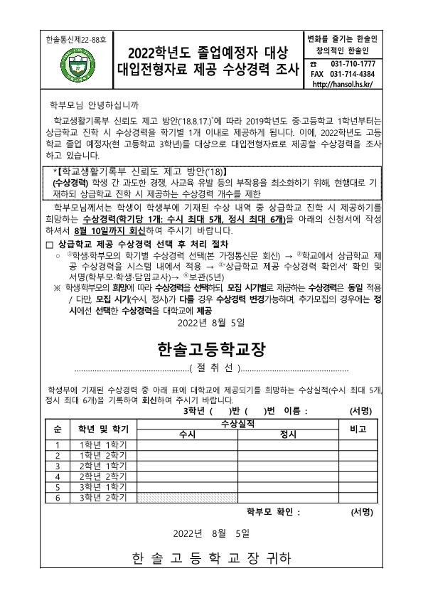 °¡Á¤Åë½Å¹® Home > ¾Ë¸²¸¶´ç > °¡Á¤Åë½Å¹® ÀÌ ÆäÀÌÁö´Â ÀÚ¹Ù½ºÅ©¸³Æ®°¡ Áö¿øµÇÁö ¾Ê´Â ºê¶ó¿ìÀú¿¡¼ ÀϺΠ±â´ÉÀÌ Á¦´ë·Î ÀÛµ¿ÇÏÁö ¾Ê½À´Ï´Ù. Á¦¸ñ 2022Çг⵵ Á¹¾÷¿¹Á¤ÀÚ ´ë»ó ´ëÀÔÀüÇüÀÚ·á Á¦°ø ¼ö»ó°æ·Â Á¶»ç °¡Á¤Åë½Å¹® À̸§ ÃÖ*¿Á µî·ÏÀÏ 2022-08-05 ÷ºÎÆÄÀÏ 2022Çг⵵ Á¹¾÷¿¹Á¤ÀÚ ´ë»ó ´ëÀÔÀüÇüÀÚ·á Á¦°ø ¼ö»ó°æ·Â Á¶»ç °¡Á¤Åë½Å¹®.hwp   ´Ù¿î·Îµå ¼ö : [ 13 ] Àüü ÆÄÀÏ ´Ù¿î·Îµå ºê¶ó¿ìÀú º¸¾È ¾÷µ¥ÀÌÆ®·Î ÀÎÇÑ ´Ù¿î·Îµå ºÒ°¡ ½Ã, ´Ù¿î·Îµå ¾È³» ¿§Áö : edge://settings/content/insecureContent [Ŭ¸¯ ÈÄ ÁÖ¼Òâ¿¡ ºÙ¿©³Ö±â] Å©·Ò : chrome://settings/content/insecureContent [Ŭ¸¯ ÈÄ ÁÖ¼Òâ¿¡ ºÙ¿©³Ö±â] À§ ÁÖ¼Ò·Î Á¢±ÙÇϼż Çã¿ë ºÎºÐ¿¡ Çб³ µµ¸ÞÀÎ()À» ³Ö°í ÀúÀåÇÏ½Ã¸é ´Ù¿î·Îµå°¡ °¡´ÉÇØÁý´Ï´Ù. ÀμâÇϱ⠸ñ·Ï ÀÌÀü±Û 2022Çг⵵ 2Çб⠱³°úº¸Ãæ ÁýÁßÇÁ·Î±×·¥ ½Åû ¾È³» / ÃÖ¿µ¿Á 2022.08.03 ´ÙÀ½±Û 2022Çг⵵ 2Çб⠿¶óÀÎ º¸Ãæ°úÁ¤(¹ÌÀ̼ö¡¤¹Ì°³¼³) ½Åû ¾È³» / ÃÖ¿µ¿Á 2022.08.18
