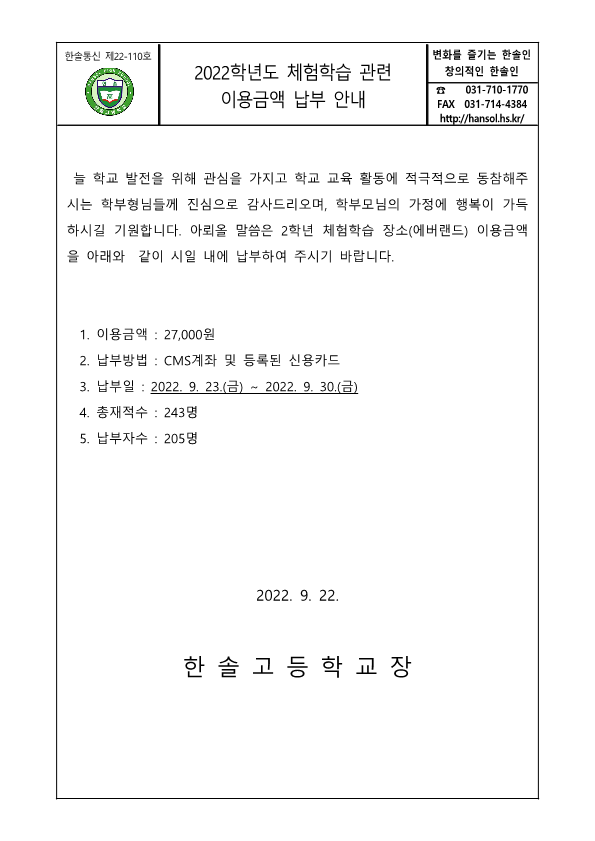 °¡Á¤Åë½Å¹® Home > ¾Ë¸²¸¶´ç > °¡Á¤Åë½Å¹® ÀÌ ÆäÀÌÁö´Â ÀÚ¹Ù½ºÅ©¸³Æ®°¡ Áö¿øµÇÁö ¾Ê´Â ºê¶ó¿ìÀú¿¡¼ ÀϺΠ±â´ÉÀÌ Á¦´ë·Î ÀÛµ¿ÇÏÁö ¾Ê½À´Ï´Ù. Á¦¸ñ 2022Çг⵵ üÇèÇнÀ °ü·Ã ÀÌ¿ë±Ý¾× ³³ºÎ ¾È³» À̸§ ÃÖ*¿Á µî·ÏÀÏ 2022-09-22 ÷ºÎÆÄÀÏ Àüü ÆÄÀÏ ´Ù¿î·Îµå ºê¶ó¿ìÀú º¸¾È ¾÷µ¥ÀÌÆ®·Î ÀÎÇÑ ´Ù¿î·Îµå ºÒ°¡ ½Ã, ´Ù¿î·Îµå ¾È³» ¿§Áö : edge://settings/content/insecureContent [Ŭ¸¯ ÈÄ ÁÖ¼Òâ¿¡ ºÙ¿©³Ö±â] Å©·Ò : chrome://settings/content/insecureContent [Ŭ¸¯ ÈÄ ÁÖ¼Òâ¿¡ ºÙ¿©³Ö±â] À§ ÁÖ¼Ò·Î Á¢±ÙÇϼż Çã¿ë ºÎºÐ¿¡ Çб³ µµ¸ÞÀÎ()À» ³Ö°í ÀúÀåÇÏ½Ã¸é ´Ù¿î·Îµå°¡ °¡´ÉÇØÁý´Ï´Ù. ÀμâÇϱ⠸ñ·Ï ÀÌÀü±Û 2022³âµµ ±³À°±Þ¿©․±³À°ºñ Áö¿ø ½Åû ¾È³» / Á¤¿µ¹Ì 2022.09.21 ´ÙÀ½±Û 2022³â ±³À°±Þ¿© ÇнÀƯº°Áö¿ø±Ý ½Åû±â°£ ¿¬Àå ¾È³» / Á¤¿µ¹Ì 2022.09.29