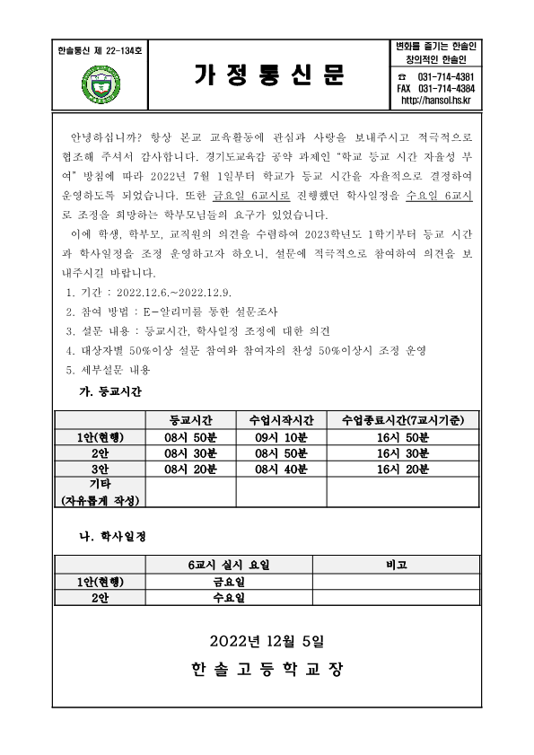 °¡Á¤Åë½Å¹® Home > ¾Ë¸²¸¶´ç > °¡Á¤Åë½Å¹® ÀÌ ÆäÀÌÁö´Â ÀÚ¹Ù½ºÅ©¸³Æ®°¡ Áö¿øµÇÁö ¾Ê´Â ºê¶ó¿ìÀú¿¡¼ ÀϺΠ±â´ÉÀÌ Á¦´ë·Î ÀÛµ¿ÇÏÁö ¾Ê½À´Ï´Ù. Á¦¸ñ µî±³ ½Ã°£ Á¶Á¤ ÀÇ°ß ¼ö·Å °¡Á¤Åë½Å¹® À̸§ ÃÖ*¿Á µî·ÏÀÏ 2022-12-05 ÷ºÎÆÄÀÏ µî±³ ½Ã°£ Á¶Á¤ ÀÇ°ß ¼ö·Å °¡Á¤Åë½Å¹®.hwp   ´Ù¿î·Îµå ¼ö : [ 7 ] Àüü ÆÄÀÏ ´Ù¿î·Îµå ºê¶ó¿ìÀú º¸¾È ¾÷µ¥ÀÌÆ®·Î ÀÎÇÑ ´Ù¿î·Îµå ºÒ°¡ ½Ã, ´Ù¿î·Îµå ¾È³» ¿§Áö : edge://settings/content/insecureContent [Ŭ¸¯ ÈÄ ÁÖ¼Òâ¿¡ ºÙ¿©³Ö±â] Å©·Ò : chrome://settings/content/insecureContent [Ŭ¸¯ ÈÄ ÁÖ¼Òâ¿¡ ºÙ¿©³Ö±â] À§ ÁÖ¼Ò·Î Á¢±ÙÇϼż Çã¿ë ºÎºÐ¿¡ Çб³ µµ¸ÞÀÎ()À» ³Ö°í ÀúÀåÇÏ½Ã¸é ´Ù¿î·Îµå°¡ °¡´ÉÇØÁý´Ï´Ù. ÀμâÇϱ⠸ñ·Ï ÀÌÀü±Û 2022 °Ü¿ï¹æÇÐ ±³°úº¸Ãæ ÁýÁßÇÁ·Î±×·¥ °³¼³ Èñ¸Á ÇÁ·Î±×·¥ ¼ö¿ä ¼³¹®Á¶»ç / ÃÖ¿µ¿Á 2022.12.05 ´ÙÀ½±Û 2022Çг⵵ 3Çгâ Á¹¾÷½Ä ¾È³» / ÃÖ¿µ¿Á 2022.12.12