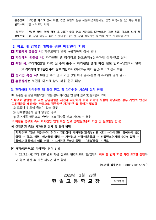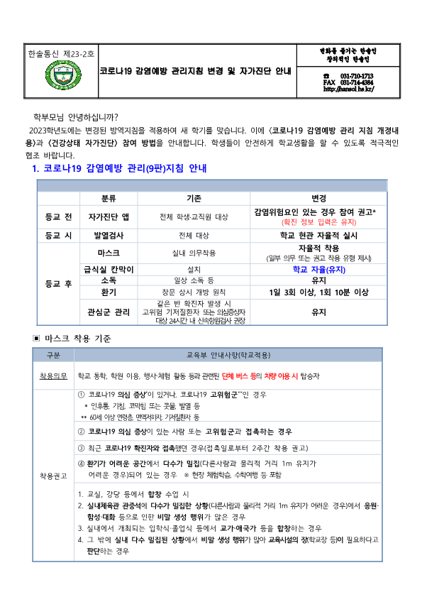 °¡Á¤Åë½Å¹® Home > ¾Ë¸²¸¶´ç > °¡Á¤Åë½Å¹® ÀÌ ÆäÀÌÁö´Â ÀÚ¹Ù½ºÅ©¸³Æ®°¡ Áö¿øµÇÁö ¾Ê´Â ºê¶ó¿ìÀú¿¡¼ ÀϺΠ±â´ÉÀÌ Á¦´ë·Î ÀÛµ¿ÇÏÁö ¾Ê½À´Ï´Ù. Á¦¸ñ Äڷγª19 °¨¿°¿¹¹æ °ü¸®Áöħ º¯°æ ¹× ÀÚ°¡Áø´Ü ¾È³» À̸§ ÃÖ*¿Á µî·ÏÀÏ 2023-03-02 ÷ºÎÆÄÀÏ Äڷγª19 °¨¿°¿¹¹æ °ü¸®Áöħ º¯°æ ¹× ÀÚ°¡Áø´Ü ¾È³».hwp   ´Ù¿î·Îµå ¼ö : [ 3 ] Àüü ÆÄÀÏ ´Ù¿î·Îµå ºê¶ó¿ìÀú º¸¾È ¾÷µ¥ÀÌÆ®·Î ÀÎÇÑ ´Ù¿î·Îµå ºÒ°¡ ½Ã, ´Ù¿î·Îµå ¾È³» ¿§Áö : edge://settings/content/insecureContent [Ŭ¸¯ ÈÄ ÁÖ¼Òâ¿¡ ºÙ¿©³Ö±â] Å©·Ò : chrome://settings/content/insecureContent [Ŭ¸¯ ÈÄ ÁÖ¼Òâ¿¡ ºÙ¿©³Ö±â] À§ ÁÖ¼Ò·Î Á¢±ÙÇϼż Çã¿ë ºÎºÐ¿¡ Çб³ µµ¸ÞÀÎ()À» ³Ö°í ÀúÀåÇÏ½Ã¸é ´Ù¿î·Îµå°¡ °¡´ÉÇØÁý´Ï´Ù. ÀμâÇϱ⠸ñ·Ï ÀÌÀü±Û 2023Çг⵵ ÇÑ¼Ö°í °³ÀÎÁ¤º¸ ¼öÁý ÀÌ¿ëÀ» À§ÇÑ µ¿ÀÇ ¾È³» / ÃÖ¿µ¿Á 2023.03.02 ´ÙÀ½±Û 3ÇÐ³â ¹ÝÆí¼º Àç¹èÁ¤ ¹× ½Ã°£Ç¥ ¾È³» / ÃÖ¿µ¿Á 2023.03.03