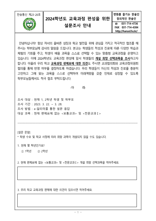 °¡Á¤Åë½Å¹® Home > ¾Ë¸²¸¶´ç > °¡Á¤Åë½Å¹® ÀÌ ÆäÀÌÁö´Â ÀÚ¹Ù½ºÅ©¸³Æ®°¡ Áö¿øµÇÁö ¾Ê´Â ºê¶ó¿ìÀú¿¡¼ ÀϺΠ±â´ÉÀÌ Á¦´ë·Î ÀÛµ¿ÇÏÁö ¾Ê½À´Ï´Ù. Á¦¸ñ 2024Çг⵵ ±³À°°úÁ¤ Æí¼ºÀ» À§ÇÑ ¼³¹®Á¶»ç ¾È³» À̸§ ÃÖ*¿Á µî·ÏÀÏ 2023-03-21 ÷ºÎÆÄÀÏ 2024Çг⵵ Çлý ¼±Åà °ú¸ñ °³¼³ Èñ¸Á Á¶»ç °¡Á¤Åë½Å¹®.hwp   ´Ù¿î·Îµå ¼ö : [ 10 ] Àüü ÆÄÀÏ ´Ù¿î·Îµå ºê¶ó¿ìÀú º¸¾È ¾÷µ¥ÀÌÆ®·Î ÀÎÇÑ ´Ù¿î·Îµå ºÒ°¡ ½Ã, ´Ù¿î·Îµå ¾È³» ¿§Áö : edge://settings/content/insecureContent [Ŭ¸¯ ÈÄ ÁÖ¼Òâ¿¡ ºÙ¿©³Ö±â] Å©·Ò : chrome://settings/content/insecureContent [Ŭ¸¯ ÈÄ ÁÖ¼Òâ¿¡ ºÙ¿©³Ö±â] À§ ÁÖ¼Ò·Î Á¢±ÙÇϼż Çã¿ë ºÎºÐ¿¡ Çб³ µµ¸ÞÀÎ()À» ³Ö°í ÀúÀåÇÏ½Ã¸é ´Ù¿î·Îµå°¡ °¡´ÉÇØÁý´Ï´Ù. ÀμâÇϱ⠸ñ·Ï ÀÌÀü±Û 2023Çгâ À§Å¬·¡½º»ó´ãȰµ¿ º¸È£ÀÚ µ¿ÀÇ ¾È³» / ÃÖ¿µ¿Á 2023.03.20 ´ÙÀ½±Û Çкθðȸ ±¸¼º ¹× ÀÓ¿ø´Ü ¼±Ãâ °á°ú ¾È³» / ÃÖ¿µ¿Á 2023.03.21