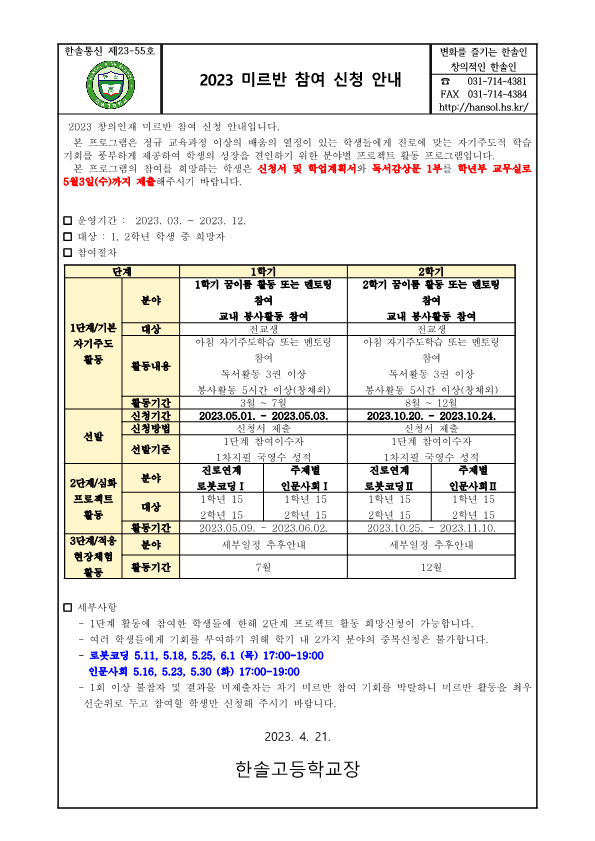 °¡Á¤Åë½Å¹® Home > ¾Ë¸²¸¶´ç > °¡Á¤Åë½Å¹® ÀÌ ÆäÀÌÁö´Â ÀÚ¹Ù½ºÅ©¸³Æ®°¡ Áö¿øµÇÁö ¾Ê´Â ºê¶ó¿ìÀú¿¡¼ ÀϺΠ±â´ÉÀÌ Á¦´ë·Î ÀÛµ¿ÇÏÁö ¾Ê½À´Ï´Ù. Á¦¸ñ 2023 ¹Ì¸£¹Ý Âü¿© ½Åû ¾È³» À̸§ ÃÖ*¿Á µî·ÏÀÏ 2023-04-21 ÷ºÎÆÄÀÏ 2023 ¹Ì¸£¹Ý Âü¿© ½Åû ¾È³» °¡Á¤Åë½Å¹®.hwp   ´Ù¿î·Îµå ¼ö : [ 59 ] Àüü ÆÄÀÏ ´Ù¿î·Îµå ºê¶ó¿ìÀú º¸¾È ¾÷µ¥ÀÌÆ®·Î ÀÎÇÑ ´Ù¿î·Îµå ºÒ°¡ ½Ã, ´Ù¿î·Îµå ¾È³» ¿§Áö : edge://settings/content/insecureContent [Ŭ¸¯ ÈÄ ÁÖ¼Òâ¿¡ ºÙ¿©³Ö±â] Å©·Ò : chrome://settings/content/insecureContent [Ŭ¸¯ ÈÄ ÁÖ¼Òâ¿¡ ºÙ¿©³Ö±â] À§ ÁÖ¼Ò·Î Á¢±ÙÇϼż Çã¿ë ºÎºÐ¿¡ Çб³ µµ¸ÞÀÎ()À» ³Ö°í ÀúÀåÇÏ½Ã¸é ´Ù¿î·Îµå°¡ °¡´ÉÇØÁý´Ï´Ù. ÀμâÇϱ⠸ñ·Ï ÀÌÀü±Û ÃÖ¼Ò ¼ºÃë¼öÁØ º¸Àå Áöµµ ¾È³» / ÃÖ¿µ¿Á 2023.04.18 ´ÙÀ½±Û ±³³» À½¾Ç °æ¿¬ ´ëȸ ¾È³» / ÃÖ¿µ¿Á 2023.04.24