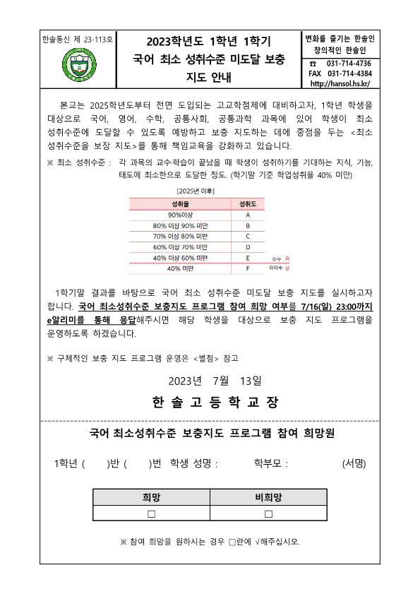 °¡Á¤Åë½Å¹® Home > ¾Ë¸²¸¶´ç > °¡Á¤Åë½Å¹® ÀÌ ÆäÀÌÁö´Â ÀÚ¹Ù½ºÅ©¸³Æ®°¡ Áö¿øµÇÁö ¾Ê´Â ºê¶ó¿ìÀú¿¡¼ ÀϺΠ±â´ÉÀÌ Á¦´ë·Î ÀÛµ¿ÇÏÁö ¾Ê½À´Ï´Ù. Á¦¸ñ 2023Çг⵵ 1Çгâ 1Çб⠱¹¾î ÃÖ¼Ò ¼ºÃë¼öÁØ ¹Ìµµ´Þ º¸Ãæ Áöµµ ¾È³» À̸§ ÃÖ*¿Á µî·ÏÀÏ 2023-07-13 ÷ºÎÆÄÀÏ ±¹¾î ÃÖ¼Ò¼ºÃë¼öÁØ º¸ÃæÁöµµ ÇÁ·Î±×·¥ ¾È³» °¡Á¤Åë½Å¹®.hwp   ´Ù¿î·Îµå ¼ö : [ 7 ] Àüü ÆÄÀÏ ´Ù¿î·Îµå ºê¶ó¿ìÀú º¸¾È ¾÷µ¥ÀÌÆ®·Î ÀÎÇÑ ´Ù¿î·Îµå ºÒ°¡ ½Ã, ´Ù¿î·Îµå ¾È³» ¿§Áö : edge://settings/content/insecureContent [Ŭ¸¯ ÈÄ ÁÖ¼Òâ¿¡ ºÙ¿©³Ö±â] Å©·Ò : chrome://settings/content/insecureContent [Ŭ¸¯ ÈÄ ÁÖ¼Òâ¿¡ ºÙ¿©³Ö±â] À§ ÁÖ¼Ò·Î Á¢±ÙÇϼż Çã¿ë ºÎºÐ¿¡ Çб³ µµ¸ÞÀÎ()À» ³Ö°í ÀúÀåÇÏ½Ã¸é ´Ù¿î·Îµå°¡ °¡´ÉÇØÁý´Ï´Ù. ÀμâÇϱ⠸ñ·Ï ÀÌÀü±Û 2023Çг⵵ 2Çбâ 2Çг⠱³À°°úÁ¤ ¿Ü ÇÁ·Î±×·¥ ½Åû ¾È³» / ÃÖ¿µ¿Á 2023.07.12 ´ÙÀ½±Û 2023Çг⵵ 1Çгâ 1Çб⠼öÇÐ ÃÖ¼Ò ¼ºÃë¼öÁØ ¹Ìµµ´Þ º¸Ãæ Áöµµ ¾È³» / ÃÖ¿µ¿Á 2023.07.13
