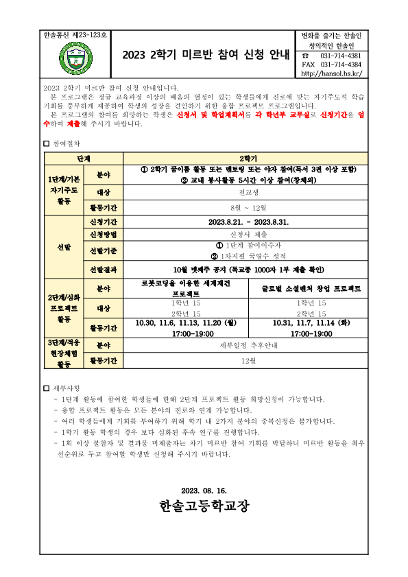 °¡Á¤Åë½Å¹® Home > ¾Ë¸²¸¶´ç > °¡Á¤Åë½Å¹® ÀÌ ÆäÀÌÁö´Â ÀÚ¹Ù½ºÅ©¸³Æ®°¡ Áö¿øµÇÁö ¾Ê´Â ºê¶ó¿ìÀú¿¡¼ ÀϺΠ±â´ÉÀÌ Á¦´ë·Î ÀÛµ¿ÇÏÁö ¾Ê½À´Ï´Ù. Á¦¸ñ 2023 2Çб⠹̸£¹Ý Âü¿© ½Åû ¾È³» À̸§ ÃÖ*¿Á µî·ÏÀÏ 2023-08-16 ÷ºÎÆÄÀÏ 2023 2Çб⠹̸£¹Ý Âü¿© ½Åû ¾È³».hwp   ´Ù¿î·Îµå ¼ö : [ 34 ] Àüü ÆÄÀÏ ´Ù¿î·Îµå ºê¶ó¿ìÀú º¸¾È ¾÷µ¥ÀÌÆ®·Î ÀÎÇÑ ´Ù¿î·Îµå ºÒ°¡ ½Ã, ´Ù¿î·Îµå ¾È³» ¿§Áö : edge://settings/content/insecureContent [Ŭ¸¯ ÈÄ ÁÖ¼Òâ¿¡ ºÙ¿©³Ö±â] Å©·Ò : chrome://settings/content/insecureContent [Ŭ¸¯ ÈÄ ÁÖ¼Òâ¿¡ ºÙ¿©³Ö±â] À§ ÁÖ¼Ò·Î Á¢±ÙÇϼż Çã¿ë ºÎºÐ¿¡ Çб³ µµ¸ÞÀÎ()À» ³Ö°í ÀúÀåÇÏ½Ã¸é ´Ù¿î·Îµå°¡ °¡´ÉÇØÁý´Ï´Ù. ÀμâÇϱ⠸ñ·Ï ÀÌÀü±Û ¼¿ï´ëÇб³ ³ó¾÷»ý¸í°úÇдëÇÐ Àü°ø¼Ò°³ Ư° ½Åû ¾È³» / ÃÖ¿µ¿Á 2023.08.16 ´ÙÀ½±Û ³ªÀ̽ºÇ÷¯½º ÀÌ¿ë ¾È³»(Çлý¿ë) / ÃÖ¿µ¿Á 2023.08.18