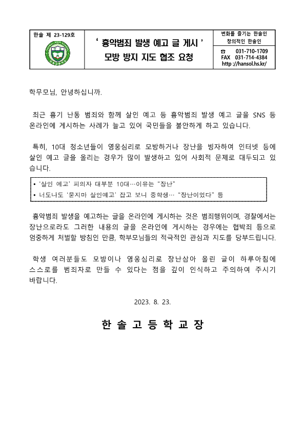 °¡Á¤Åë½Å¹® Home > ¾Ë¸²¸¶´ç > °¡Á¤Åë½Å¹® ÀÌ ÆäÀÌÁö´Â ÀÚ¹Ù½ºÅ©¸³Æ®°¡ Áö¿øµÇÁö ¾Ê´Â ºê¶ó¿ìÀú¿¡¼ ÀϺΠ±â´ÉÀÌ Á¦´ë·Î ÀÛµ¿ÇÏÁö ¾Ê½À´Ï´Ù. Á¦¸ñ 2023Çг⵵ ¡®Èä¾Ç¹üÁË ¹ß»ý ¿¹°í ±Û °Ô½Ã¡¯¸ð¹æ ¹æÁö Áöµµ ÇùÁ¶ ¿äû À̸§ ÃÖ*¿Á µî·ÏÀÏ 2023-08-23 ÷ºÎÆÄÀÏ Àüü ÆÄÀÏ ´Ù¿î·Îµå ºê¶ó¿ìÀú º¸¾È ¾÷µ¥ÀÌÆ®·Î ÀÎÇÑ ´Ù¿î·Îµå ºÒ°¡ ½Ã, ´Ù¿î·Îµå ¾È³» ¿§Áö : edge://settings/content/insecureContent [Ŭ¸¯ ÈÄ ÁÖ¼Òâ¿¡ ºÙ¿©³Ö±â] Å©·Ò : chrome://settings/content/insecureContent [Ŭ¸¯ ÈÄ ÁÖ¼Òâ¿¡ ºÙ¿©³Ö±â] À§ ÁÖ¼Ò·Î Á¢±ÙÇϼż Çã¿ë ºÎºÐ¿¡ Çб³ µµ¸ÞÀÎ()À» ³Ö°í ÀúÀåÇÏ½Ã¸é ´Ù¿î·Îµå°¡ °¡´ÉÇØÁý´Ï´Ù. ÀμâÇϱ⠸ñ·Ï ÀÌÀü±Û ÁÖÁ¦Å½±¸ Ä·ÇÁ ½Åû ¾È³» / ÃÖ¿µ¿Á 2023.08.23 ´ÙÀ½±Û Çлý °¨¿°º´ ÇÐºÎ¸ð Æ¯° ½Åû ¾È³» / ÃÖ¿µ¿Á 2023.08.28
