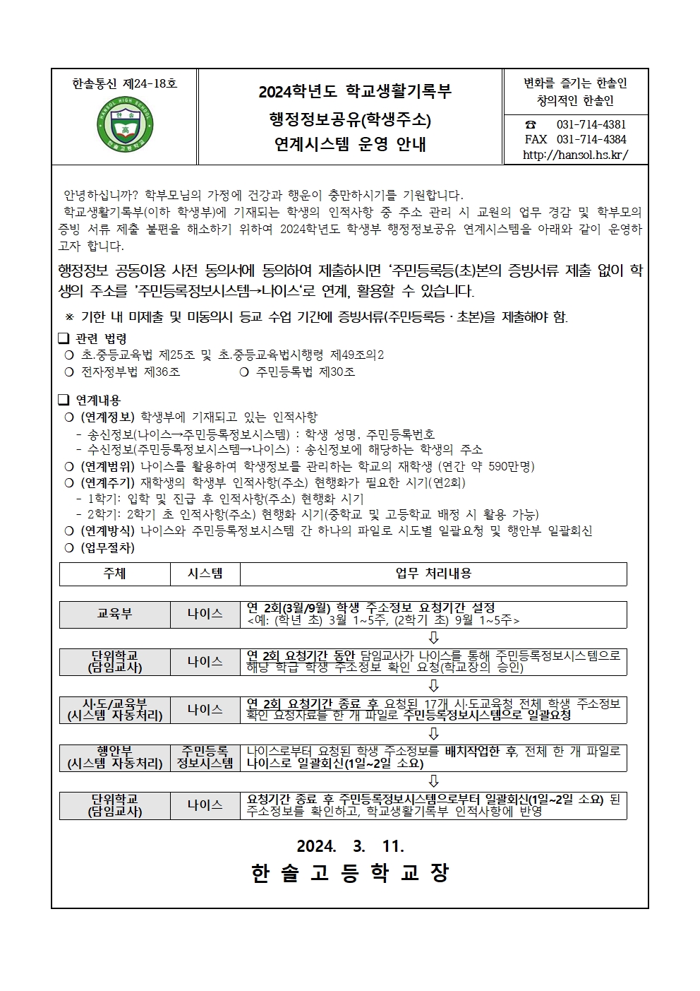 °¡Á¤Åë½Å¹® Home > ¾Ë¸²¸¶´ç > °¡Á¤Åë½Å¹® ÀÌ ÆäÀÌÁö´Â ÀÚ¹Ù½ºÅ©¸³Æ®°¡ Áö¿øµÇÁö ¾Ê´Â ºê¶ó¿ìÀú¿¡¼ ÀϺΠ±â´ÉÀÌ Á¦´ë·Î ÀÛµ¿ÇÏÁö ¾Ê½À´Ï´Ù. Á¦¸ñ 2024Çг⵵ Çб³»ýȰ±â·ÏºÎ ÇàÁ¤Á¤º¸°øÀ¯(ÇлýÁÖ¼Ò) ¿¬°è½Ã½ºÅÛ ¿î¿µ ¾È³» À̸§ ±è*Áø µî·ÏÀÏ 2024-03-11 ÷ºÎÆÄÀÏ (°¡Åë ÀüÇгâ)2024Çг⵵ Çб³»ýȰ±â·ÏºÎ ÇàÁ¤Á¤º¸°øÀ¯(ÇлýÁÖ¼Ò)¾È³».hwp   ´Ù¿î·Îµå ¼ö : [ 13 ] Àüü ÆÄÀÏ ´Ù¿î·Îµå ºê¶ó¿ìÀú º¸¾È ¾÷µ¥ÀÌÆ®·Î ÀÎÇÑ ´Ù¿î·Îµå ºÒ°¡ ½Ã, ´Ù¿î·Îµå ¾È³» ¿§Áö : edge://settings/content/insecureContent [Ŭ¸¯ ÈÄ ÁÖ¼Òâ¿¡ ºÙ¿©³Ö±â] Å©·Ò : chrome://settings/content/insecureContent [Ŭ¸¯ ÈÄ ÁÖ¼Òâ¿¡ ºÙ¿©³Ö±â] À§ ÁÖ¼Ò·Î Á¢±ÙÇϼż Çã¿ë ºÎºÐ¿¡ Çб³ µµ¸ÞÀÎ()À» ³Ö°í ÀúÀåÇÏ½Ã¸é ´Ù¿î·Îµå°¡ °¡´ÉÇØÁý´Ï´Ù. ÀμâÇϱ⠸ñ·Ï ÀÌÀü±Û °æ±âÁøÇÐÁ¤º¸¼¾ÅÍ 4¿ù ÁøÇлó´ã½Ç »ó´ã ½Åû ¾È³» / ±èÇöÁø 2024.03.11 ´ÙÀ½±Û 2024³â ¼®½Ä °á°ú ¾È³» / ±èÇöÁø 2024.03.12