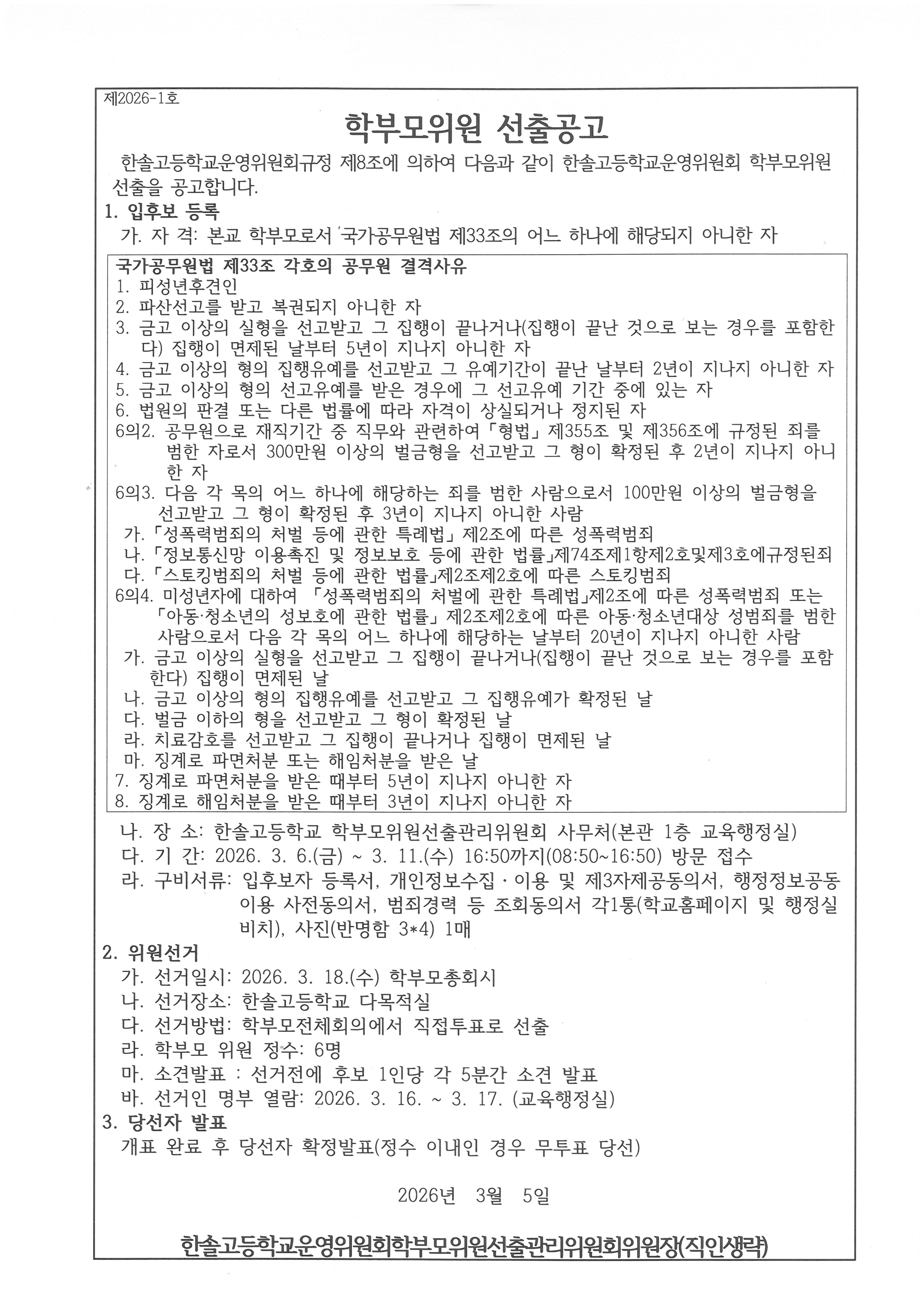 °¡Á¤Åë½Å¹® Home > ¾Ë¸²¸¶´ç > °¡Á¤Åë½Å¹® ÀÌ ÆäÀÌÁö´Â ÀÚ¹Ù½ºÅ©¸³Æ®°¡ Áö¿øµÇÁö ¾Ê´Â ºê¶ó¿ìÀú¿¡¼ ÀϺΠ±â´ÉÀÌ Á¦´ë·Î ÀÛµ¿ÇÏÁö ¾Ê½À´Ï´Ù. Á¦¸ñ 2026Çг⵵ Á¦31±â Çб³¿î¿µÀ§¿øÈ¸ ÇкθðÀ§¿ø ¼±Ãâ°ø°í À̸§ À±*¹Ì µî·ÏÀÏ 2026-03-05 2026Çг⵵ Á¦31±â Çб³¿î¿µÀ§¿øÈ¸ ÇкθðÀ§¿ø ¼±Ãâ°ø°í °¡Á¤Åë½Å¹®ÀÔ´Ï´Ù. ÷ºÎÆÄÀÏ ÇкθðÀ§¿ø ¼±Ãâ°ø°í.pdf   ´Ù¿î·Îµå ¼ö : [ 8 ] ÇкθðÀ§¿ø ¼±Ãâ°ø°í.hwp   ´Ù¿î·Îµå ¼ö : [ 15 ] Àüü ÆÄÀÏ ´Ù¿î·Îµå ºê¶ó¿ìÀú º¸¾È ¾÷µ¥ÀÌÆ®·Î ÀÎÇÑ ´Ù¿î·Îµå ºÒ°¡ ½Ã, ´Ù¿î·Îµå ¾È³» ¿§Áö : edge://settings/content/insecureContent [Ŭ¸¯ ÈÄ ÁÖ¼Òâ¿¡ ºÙ¿©³Ö±â] Å©·Ò : chrome://settings/content/insecureContent [Ŭ¸¯ ÈÄ ÁÖ¼Òâ¿¡ ºÙ¿©³Ö±â] À§ ÁÖ¼Ò·Î Á¢±ÙÇϼż Çã¿ë ºÎºÐ¿¡ Çб³ µµ¸ÞÀÎ()À» ³Ö°í ÀúÀåÇÏ½Ã¸é ´Ù¿î·Îµå°¡ °¡´ÉÇØÁý´Ï´Ù. ÀμâÇϱ⠸ñ·Ï ÀÌÀü±Û 2026Çг⵵ Çб³»ýȰ±â·ÏºÎ ÇàÁ¤Á¤º¸°øÀ¯(ÇлýÁÖ¼Ò) ¿¬°è½Ã½ºÅÛ ¿î¿µ ¾È³» / ±èÇöÁø 2026.03.04 ´ÙÀ½±Û 2026Çг⵵ 1Çгâ ÀÚ±âÁÖµµ Áø·Îޱ¸ ÇÁ·Î±×·¥ (²ÞÀÌ·ë ¡¤ ²ÞŰ¿ò) ¿î¿µ ¾È³» / ±èÇöÁø 2026.03.05